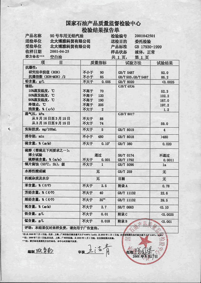 03.03.03, 国家燃料油质量监督检验中心结果也表明李正效“纳米水”降低燃油品质